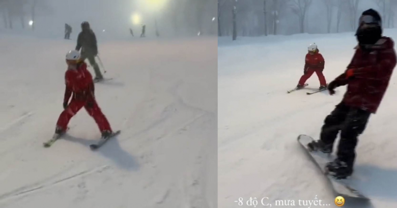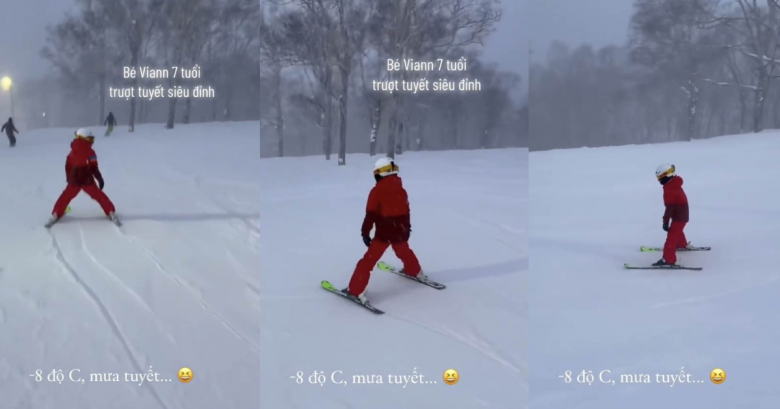 Cụ thể, trong video đăng tải, ái nữ Vivian nhà Hoa hậu Hà Kiều Anh đã có màn trình diễn trượt tuyết đẹp mắt dưới trời mưa tuyết trắng xóa âm 8 độ C. Theo đó, em giữ vững tư thế, tự tin trượt với tốc độ nhanh mà không hề lo sợ. Vì có nhiều người cùng trượt xung quanh nên Vivian tập trung quan sát, liên tục chuyển hướng nếu có người phía trước. Thậm chí có đoạn, Hà Kiều Anh phải gọi với theo nhắc con trượt chậm lại.