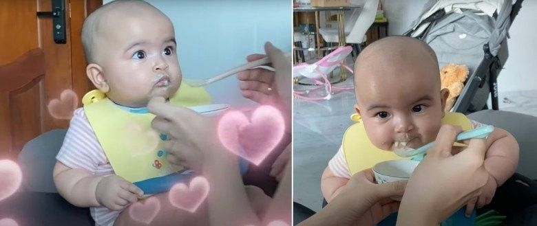 Chưa hết, bà mẹ 1 con còn rất tâm lý khi không ép con ăn. Nghĩa là bé Moon ăn được bao nhiêu thì tùy ý, chứ Võ Hạ Trâm không bắt con phải ăn hết khẩu phần của mình. Cô còn bật mí thêm vài bí quyết nữa: “Khi ăn đừng cho con xem điện thoại, đừng cho con xem TV tại vì khi ăn vô thức như vậy trẻ rất dễ bị biếng ăn. Giai đoạn 6 tháng bắt đầu ăn dặm. Giai đoạn tốt nhất là 5 tháng rưỡi đến 6 tháng. Bác sĩ khuyên nếu ăn sớm dạ dày của các bé chưa phát triển toàn diện cho nên cho ăn sớm quá sẽ ảnh hưởng đến hệ tiêu hóa của bé.