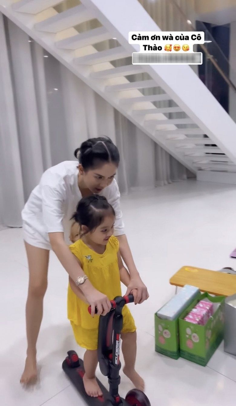 Trong những chia sẻ trước đó, nữ người mẫu sinh năm 1989 cũng thường xuyên chia sẻ những khoảnh khắc bỉm sữa của mình bên bé He trong biệt thự đắt tiền. Cũng giống như khi ra ngoài, lúc ở nhà dù có nhiều người giúp việc nhưng Ngọc Trinh cũng tự tay chăm con.