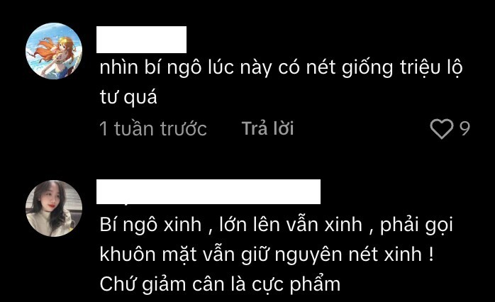 Dưới phần bình luận, netizen xuýt xoa nhan sắc ở độ tuổi 11-12 của con gái Hồng Vân, thậm chí còn so sánh cô bé đẹp hệt “đỉnh lưu nhan sắc nền giải trí Hoa ngữ” Triệu Lộ Tư. Hiện tại ở độ tuổi dậy thì, Bí Ngô đã có nhiều sự thay đổi trong ngoại hình. Đa số đều nhận xét Bí Ngô có phần mũm mĩm hơn lúc nhỏ, nhưng phải thừa nhận con gái nghệ sĩ Hồng Vân có gương mặt với các đường nét rất sắc sảo hệt mẹ, càng ngày càng nữ tính, chững chạc.