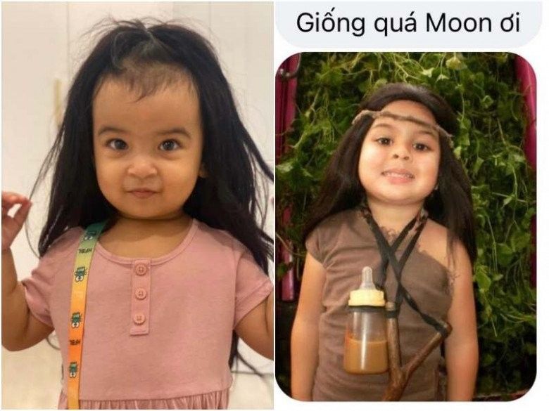 Việc ăn uống đầy đủ chất dinh dưỡng giúp con cao lớn, kích thích mọc tóc và cứng móng. Tuy nhiên dân tình nhanh chóng phát hiện, mái tóc dài và dày bất thường của Moon thật ra là tóc giả. Cộng đồng mạng bình luận: "Tính vô bình luận Moon tóc dài dữ thần vậy. Coi kĩ lại tấm thứ 3 mới biết. Moon mua tóc ở đâu giống thật vậy con", "Mẹ Trâm ảo quá nha", "Bả dễ thương quá",... Thậm chí còn có người hài hước so sánh bé Moon giống cậu bé Tarzan.