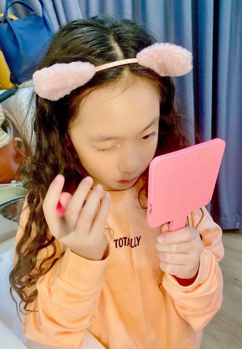 Không chỉ khéo léo trong bộ môn nhảy, được biết con gái Lý Hải còn thể hiện năng khiếu nghệ thuật khi biết tự trang điểm rất chuyên nghiệp, tự tin tạo dáng trước ống kính máy ảnh như một mẫu nhí "xịn".