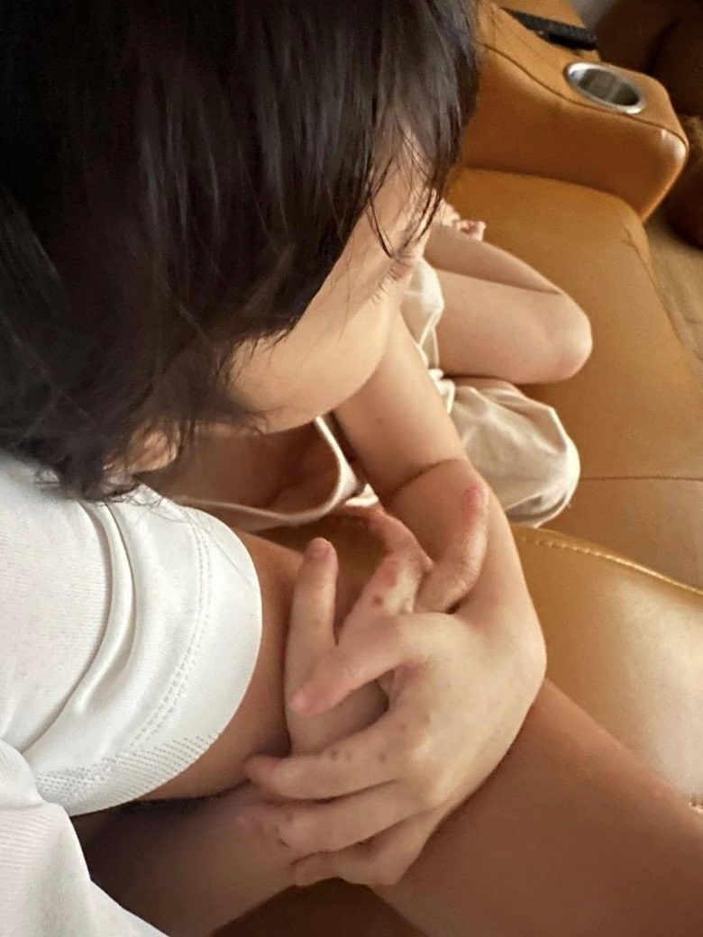 Thế nhưng cũng chính từ những hình ảnh, người hâm mộ bày tỏ sự xót xoa dành cho con gái Nhã Phương Trường Giang. Cụ thể đôi bàn tay của bé Destiny chi chít các vết mụn nhỏ li ti, có nốt mụn đang mọc lên những cũng có những vết thương đã lành. Nhiều bà mẹ bỉm có kinh nghiệm tinh ý nhận ra rằng chắc chắn Destiny đã mắc bệnh tay chân miệng - một căn bệnh khá phổ biến ở trẻ nhỏ. Ai nấy đồng loạt gửi lời chúc cho bé Destiny nhanh chóng bình phục để Trường Giang Nhã Phương bớt lo lắng.