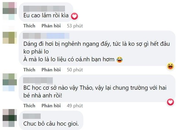 Bên cạnh câu chuyện đi học, nhiều khán giả cũng bày tỏ sự bất ngờ trước vẻ ngoài cao lớn, phổng phao của con gái Phan Như Thảo. Một vài người để lại bình luận: "Êu cao lắm rồi kìa", "Lớn nhanh quá Bồ Câu ơi", "Ui nhanh quá. Em bé đã vào đại học chữ to rồi"… Một số khác lại chú ý đến dáng đi của bé Bồ Câu khi nhận xét: "Dáng đi hơi bị nghênh ngang đấy, tức là không sợ gì hết đâu, không phải lo. À mà lo là lo liệu có oánh bạn không"...