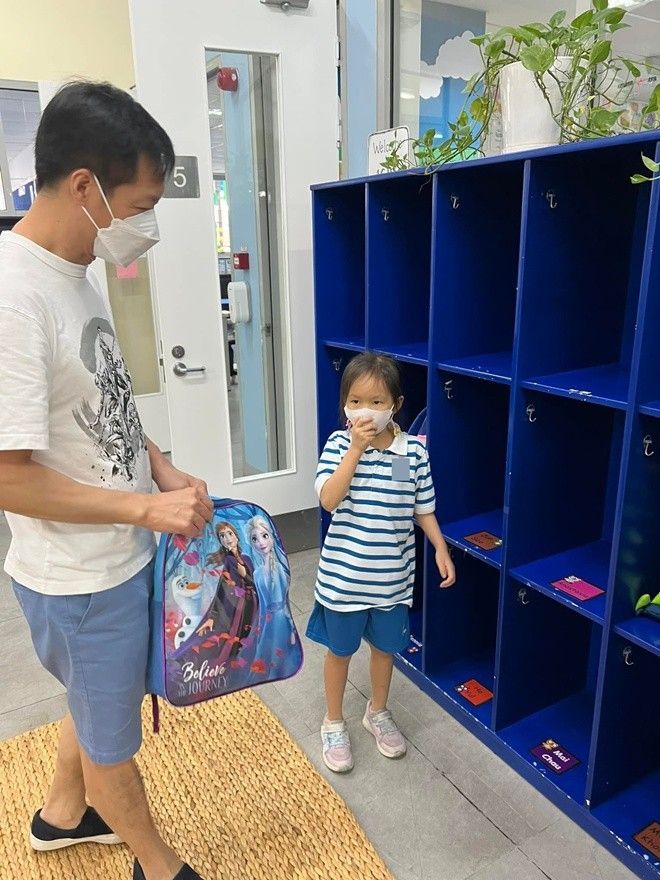 Qua loạt khoảnh khắc Phan Như Thảo chia sẻ, đại gia Đức An và con gái đều ăn mặc cực kỳ giản dị, thoải mái. Trong khi bé Bồ Câu diện áo polo cùng quần đồng phục trường thì Đức An mặc áo thun, quần short trơn. Nam doanh nhân dắt tay con gái đi theo sự hướng dẫn của giáo viên.