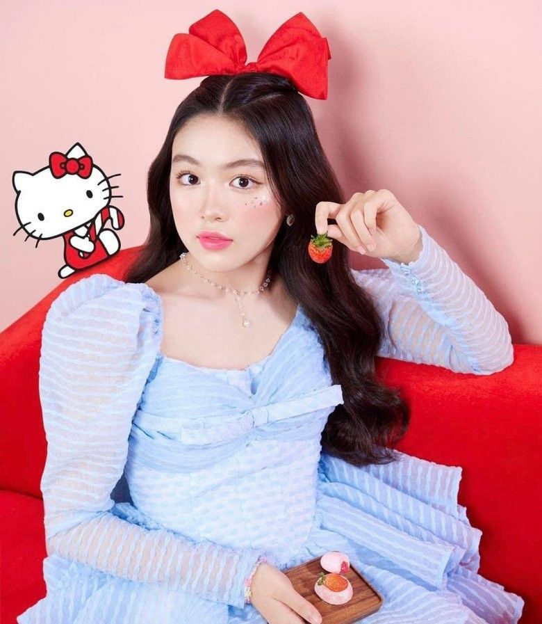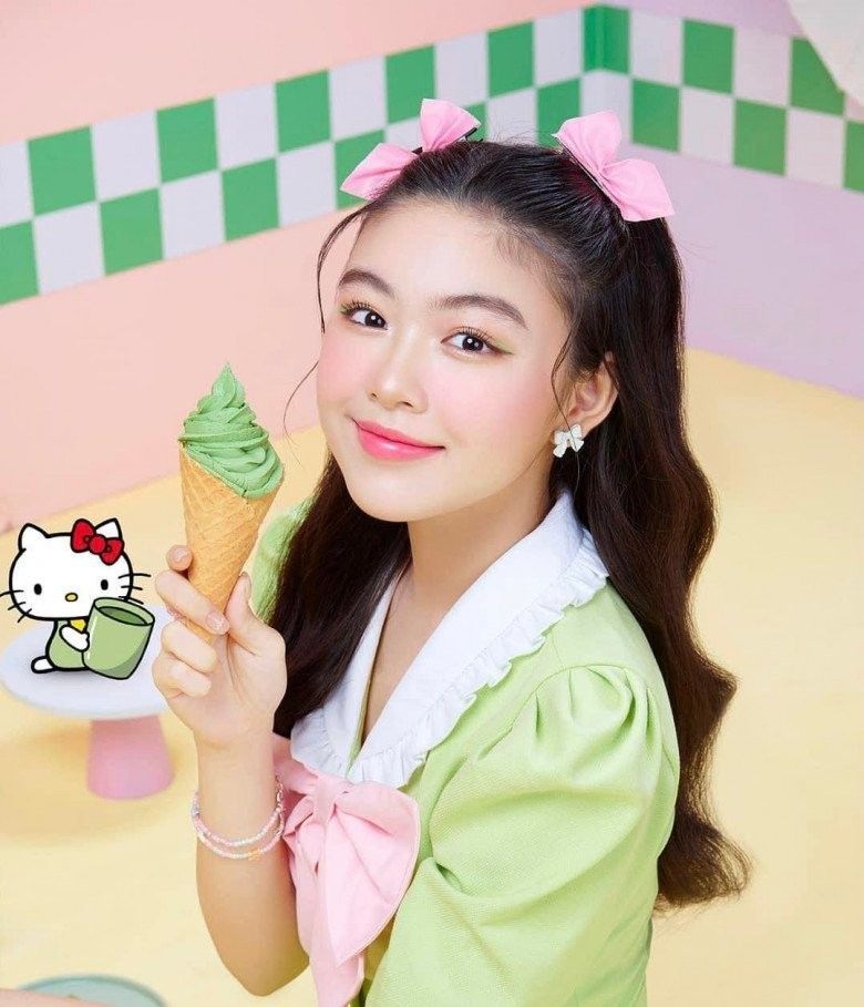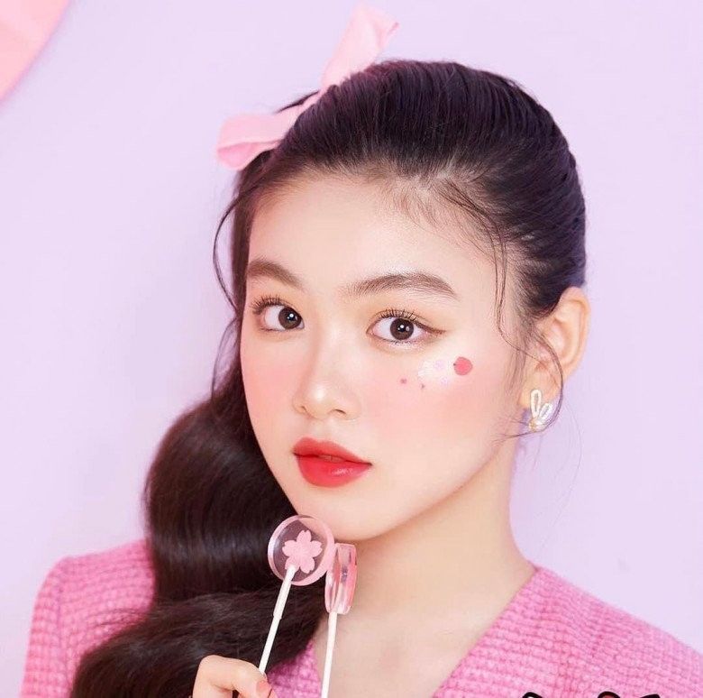 Trong bộ ảnh chụp hình quảng cáo chuyên nghiệp đầu tiên của mình, Lọ Lem tạo dáng vô cùng xinh xắn, khoe nhan sắc thiếu nữ rạng rỡ làm bao người thổn thức. Đặc biệt, đây là lần hiếm hoi ái nữ nhà Quyền Linh trang điểm đậm, trông khác hẳn vẻ ngoài trong trẻ hàng ngày. Dù vậy, cô bé vẫn không đánh mất vẻ hồn nhiên, nhí nhảnh, đáng yêu của một nữ sinh tuổi 16.