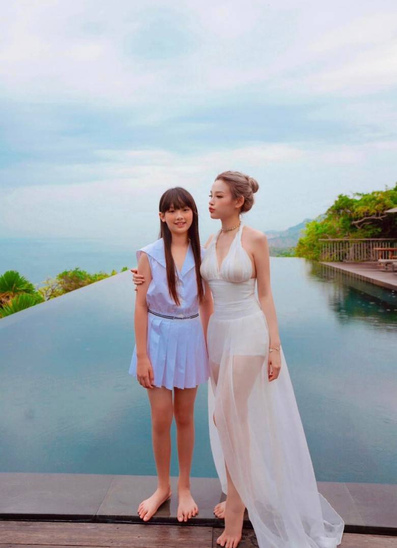 Củ Cải (tên thật là Diễm My) ở tuổi 13 nhưng đã đứng cao hơn mẹ, sở hữu chiều cao vượt trội, đôi chân thanh mảnh và khí chất chanh sả, kiêu kỳ không kém mẹ ruột. Ở dưới phần bình luận của bức ảnh, Huyền Baby khẳng định ái nữ hiện đã cao vượt mình, ngày càng điệu đà.