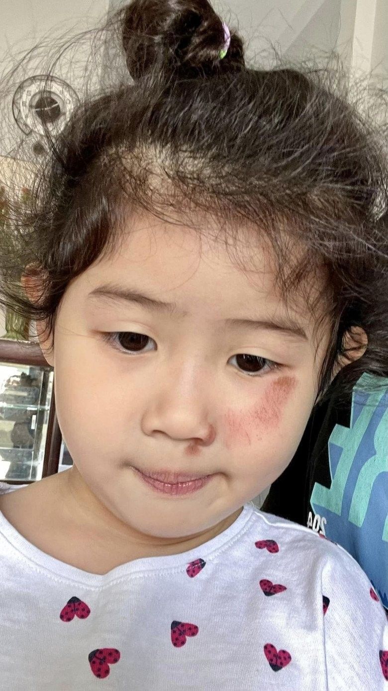 Mới đây bà mẹ đơn thân Thân Thúy Hà đã chia sẻ những hình ảnh sau vụ tai nạn xảy đến với cô con gái Hera khiến nhiều người không khỏi xót xa. Theo nữ diễn viên, cô con gái 4 tuổi đi xe đạp ở công viên nhưng không may bị té ngã với tư thế sấp mặt nên toàn bộ bên má phải và mũi phải bị trầy xước. "Con gái con lứa đi đua xe ngoài công viên về nhà mặt mũi trầy xước hết, vừa khóc vừa nói con chạy xe bình thường tự nhiên rồi con té lộn nhào vô bụi cỏ, úp mặt xuống công viên tại do cọng cỏ nó níu cái xe nên níu con bị té chớ con có chạy nhanh đâu. Tại lỗi của cọng cỏ không phải tại con. Có con gái cho nó thuỳ mị nhen" - Thân Thúy Hà hài hước kể lại.