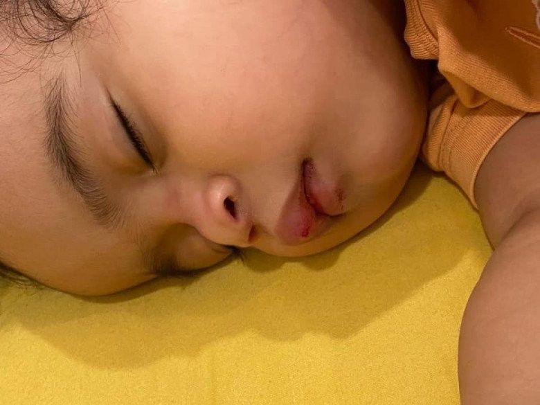Con gái Võ Hạ Trâm bị chảy máu và dập môi vì ngồi trên xe đẩy gấp gọn và ngã lộn ngào về phía trước.