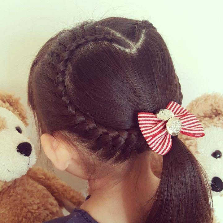 Kiểu tóc tết hình trái tim và điểm nhấn là nơ hoa.