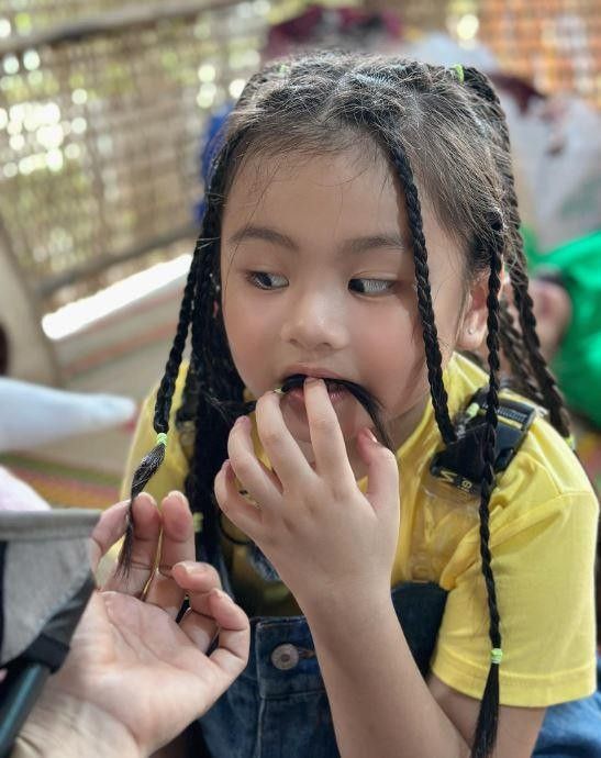 Nhìn mái tóc tết quá dày của con gái Vân Trang ai cũng trầm trồ.