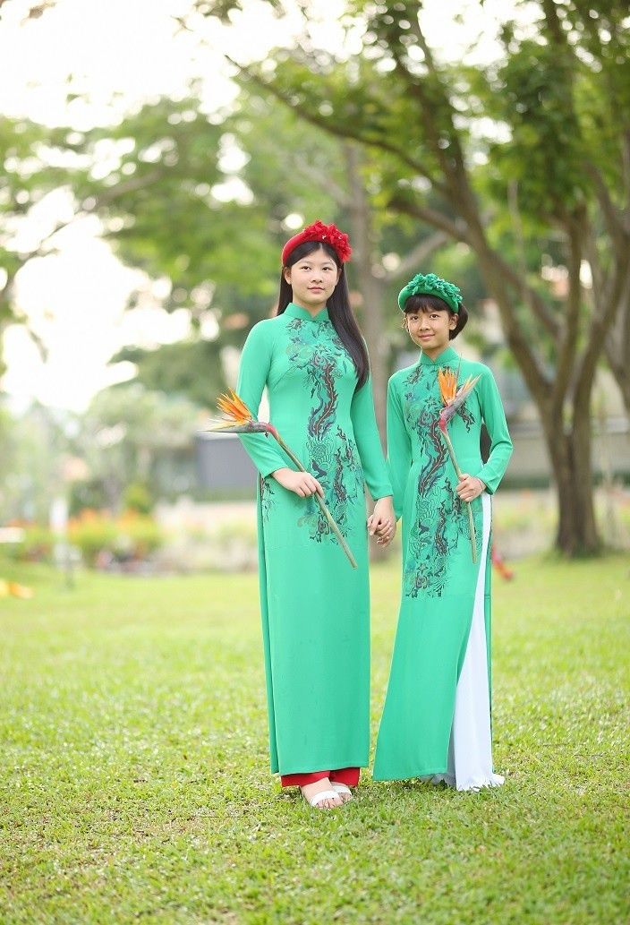 Diện áo dài, vóc dáng nàng út An Như càng thêm thanh mảnh, ra dáng thiếu nữ.