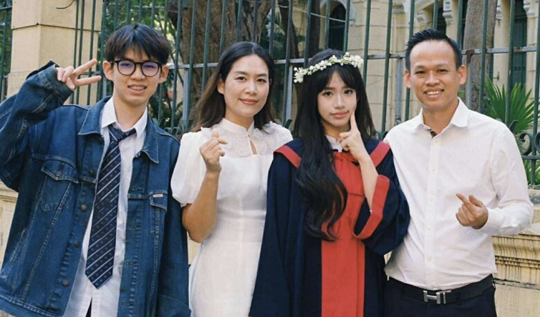Hà Hương hiện đang hạnh phúc bên ông xã làm ngân hàng cùng 2 người con.