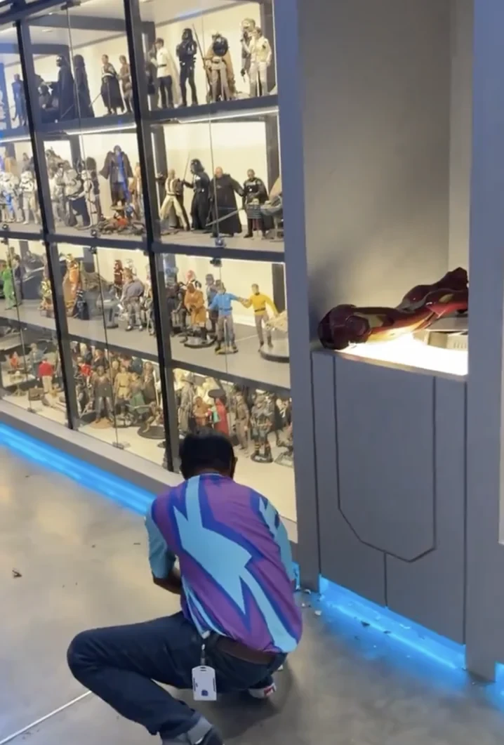 Theo báo chí nước ngoài, bé trai được cho là đã chạm vào mô hình “Người Sắt” được đặt trên cao khoảng 1 mét, trên bàn trưng bày, khiến mô hình rơi xuống đất và vỡ thành nhiều mảnh, phần đầu và thân tách rời.