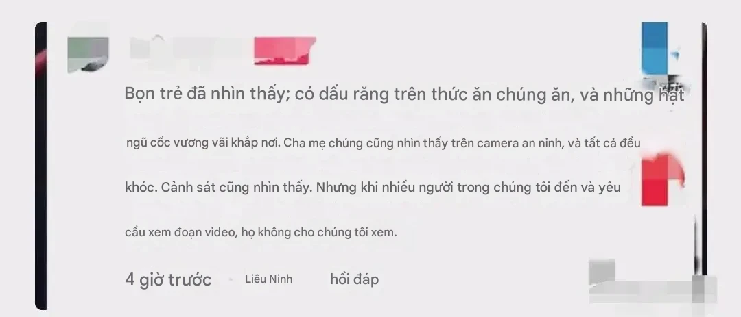 Một số phụ huynh bật khóc sau khi xem lại hình ảnh từ camera. Không ai có thể ngờ rằng, sau khi bỏ ra một khoản học phí lớn để con được học hành đầy đủ, các em lại phải ăn thức ăn thừa bị nhặt từ thùng rác – điều khiến bất kỳ ai cũng phẫn nộ.