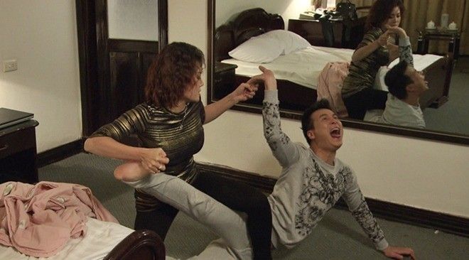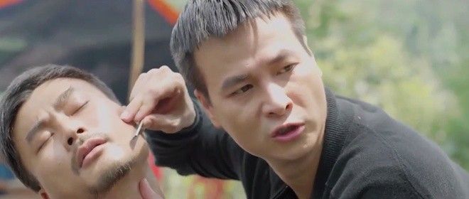 Anh Đức cho biết đó là cảnh cả gia đình ông trùm Phan Quân cùng Lương Bổng (NSND Trung Anh) họp bàn cách cứu Phan Hải (Việt Anh). Lúc này, Khải xin phép có ý kiến. Câu thoại không liên quan đến tình hình vụ việc giữa lúc căng thẳng của Khải khiến các diễn viên khác bật cười. Chính vì vậy, cảnh quay phải bấm máy nhiều lần dù mọi người khá mệt mỏi.