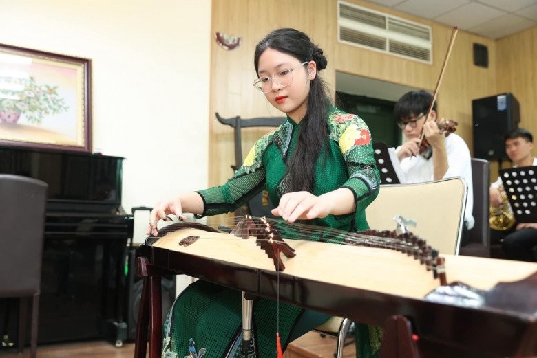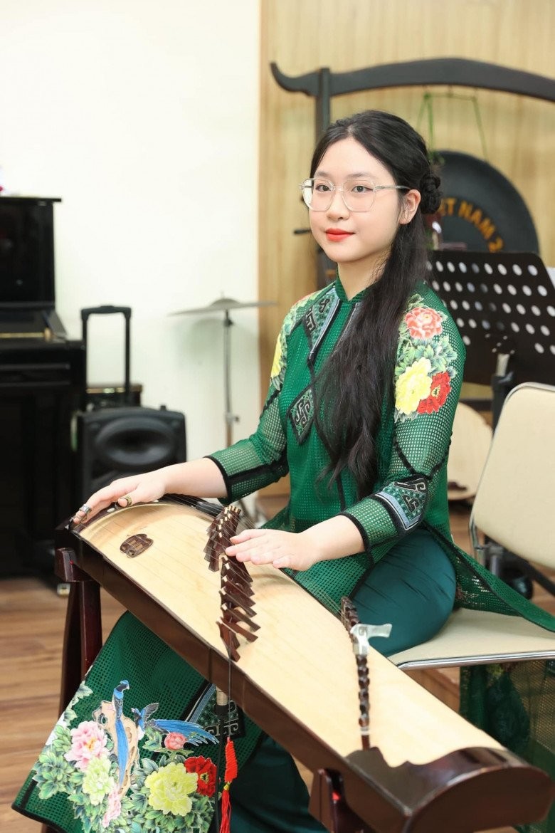 Thảo Nguyên đẹp dịu dàng khi biểu diễn đàn tranh.