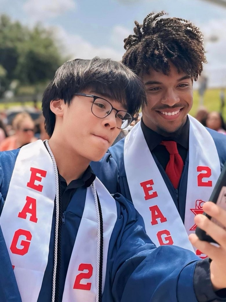 Con trai Hồng Ngọc chững chạc khi tốt nghiệp cấp 3.