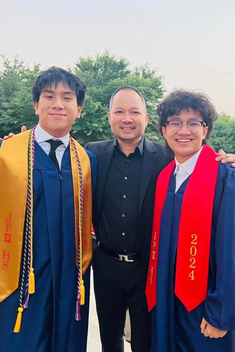 Chấn Hưng chụp ảnh cùng bố ruột Thomas Tâm.