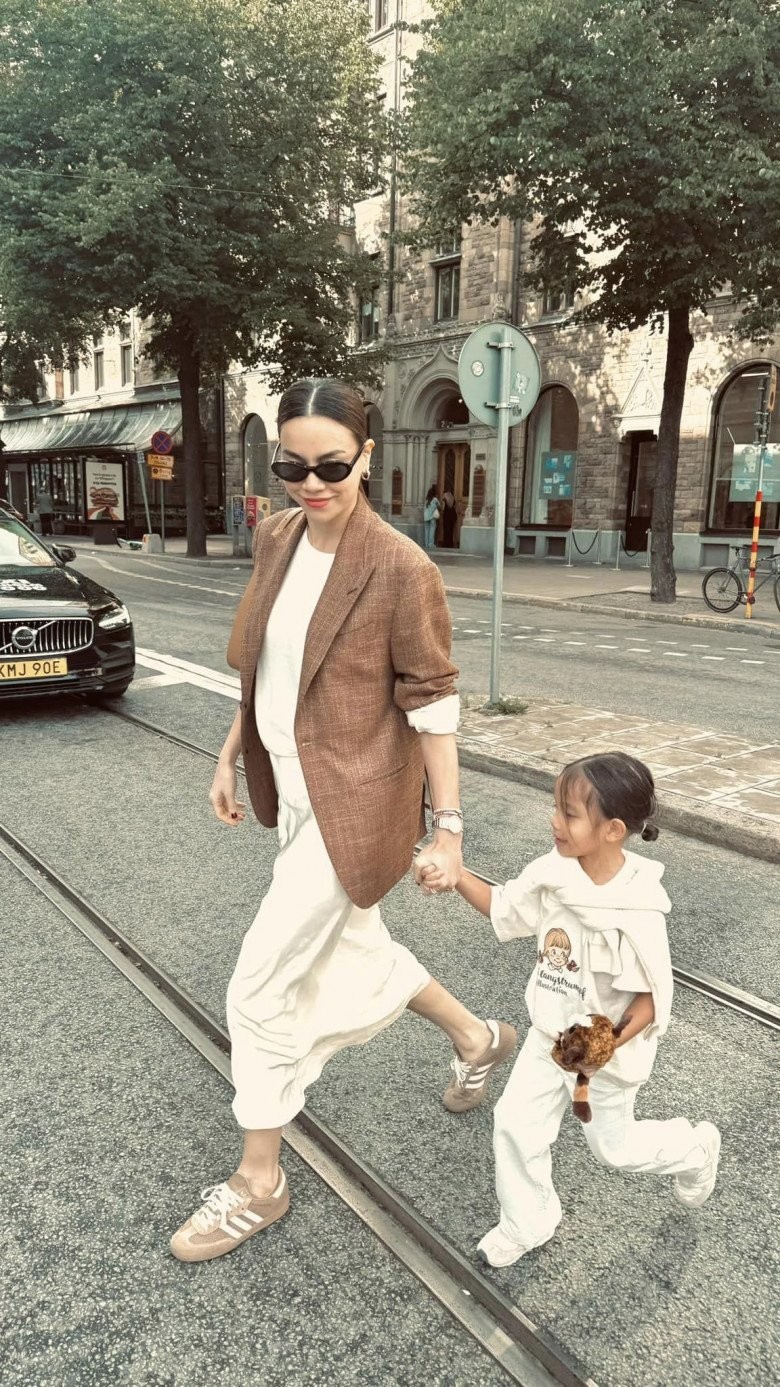 Hiện tại, cả gia đình Hồ Ngọc Hà đang ở Stockholm, Thụy Điển để thăm nhà Kim Lý. Cặp đôi vừa chia sẻ hình ảnh chụp cùng con gái Lisa khi đi dạo trên đường phố. Mỗi chuyến đi, nữ ca sĩ đều phối đồ cho cả gia đình để không những đồng điệu mà còn sành điệu.