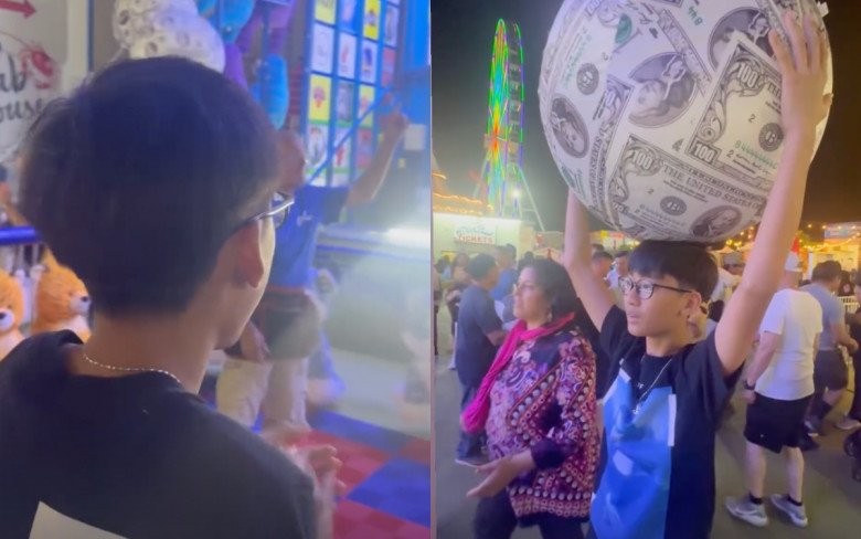 Con trai Lệ Quyên thắng giải thưởng nhờ chơi trò chơi bóng rổ.
