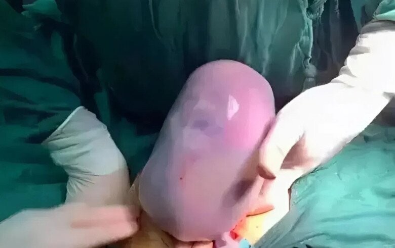 Lúc này, bác sĩ nhẹ nhàng giải thích rằng đây là một trường hợp hiếm gặp nhưng hoàn toàn bình thường trong y khoa. Em bé được sinh ra vẫn còn nguyên lớp màng ối bao bọc bên ngoài. Đây là lớp màng có nhiệm vụ bảo vệ thai nhi trong suốt quá trình mang thai, giúp em bé tránh khỏi các tác động từ môi trường bên ngoài.