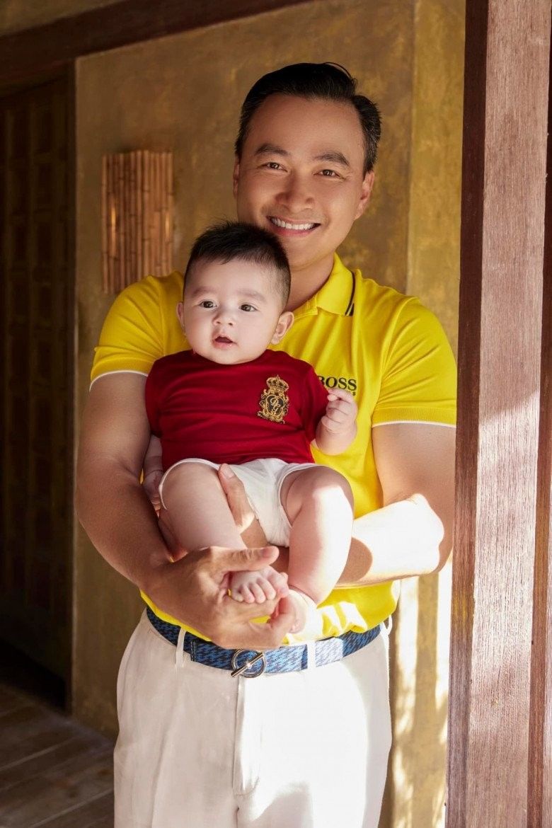 Vợ Chi Bảo mê thời trang nên từ lúc Gia Khang chào đời, cô đã chăm chút chuyện ăn mặc của bé. Dù ở nhà hay đi chơi, đi dự tiệc cùng bố mẹ, cậu bé luôn được mẹ diện cho những trang phục hợp mốt, tôn vẻ dễ thương.