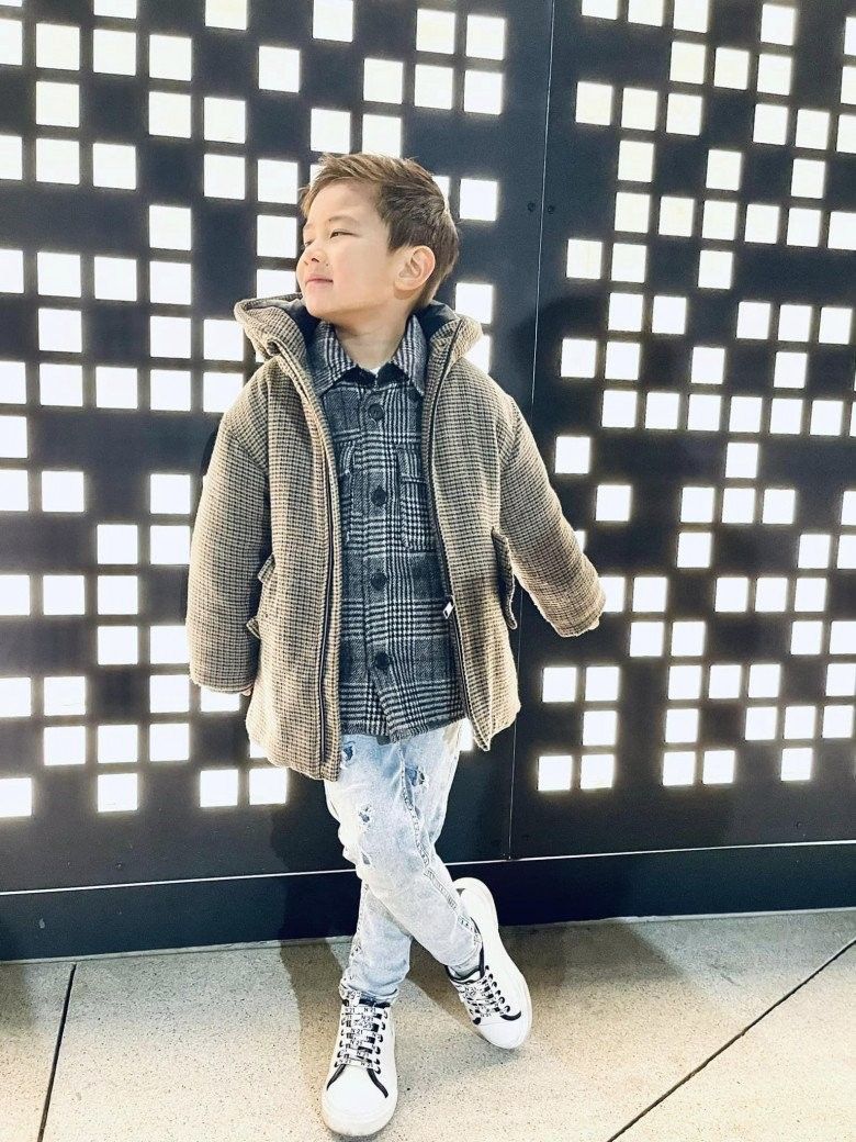 Nhóc tì càng lớn càng bộc lộ tố chất của người nổi tiếng. Diện đồ đi du lịch bụi thông thường thôi nhưng nhóc tì cũng biết cách tạo dáng thời thượng.