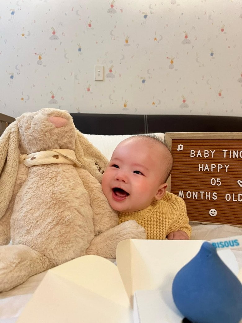 Nàng hậu cho biết con trai sẽ lớn rất nhanh nên vợ chồng cô thường xuyên chụp ảnh bé, lưu giữ từng khoảnh khắc chân thật, dễ thương nhất của con. Cặp đôi đã tạo một album số, lưu giữ hành trình lớn lên của TiNo.