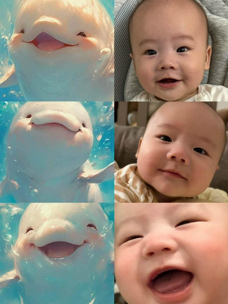 Bé TiNo có biểu cảm gương mặt giống cá heo.
