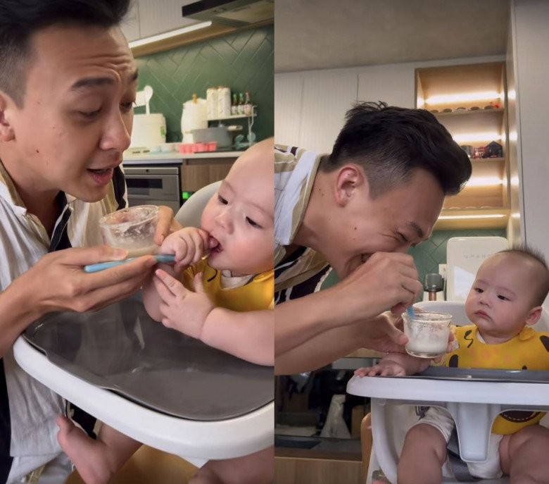 Lê Âu Ngân Anh cho biết con trai cô vừa tròn 6 tháng tuổi. Nhóc tì đang được bố mẹ cho tập ăn dặm. Cùng thời điểm, cặp đôi chia sẻ video quay lại khoảnh khắc "háu ăn" của bé TiNo. Theo đó, khi được bố bón thức ăn, nhóc tì cực kỳ hợp tác. Cậu bé còn khiến bố mẹ "hốt hoảng" khi lấy tay giật lấy đồ ăn.