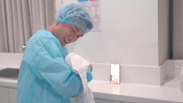 Ba đã luôn muốn được ở bên mẹ con trong suốt hành trình sinh, nhưng vì đây là ca mổ cấp cứu và ba không được phép vào. Ba chỉ có thể đứng đó, bất lực nhìn ekip đưa mẹ con vào phòng mổ. 1 tiếng chờ đợi đó là khoảng thời gian dài nhất cuộc đời ba. Và cuối cùng, con đã cất tiếng khóc chào đời khỏe mạnh và bình an.