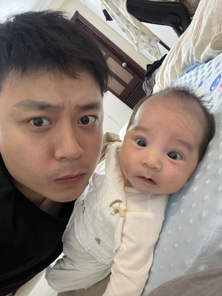 Ngày 14/2, diễn viên Hoàng Dương - con trai út của cố NSND Hoàng Dũng - đã cùng bà xã Phương Thảo chào đón quý tử đầu lòng, đặt cho con tên gọi thân thương là Hoàng Xôi. Mới đây, nam diễn viên tiếp tục khoe ảnh cùng con trai cưng, kèm dòng chú thích hóm hỉnh: "Con ai ý... Chả giống".