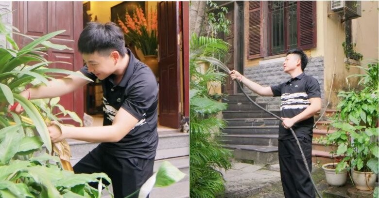 Lúc sinh thời, nghệ sĩ Hoàng Dũng rất yêu thiên nhiên, cây cối. Giờ đây con trai của cố nghệ sĩ lại tiếp nối đam mê ấy. Việc tự tay chăm bón, tưới tắm cho vườn cây mỗi ngày không chỉ mang lại niềm vui mà còn là cách để Hoàng Dương rèn luyện sự kiên nhẫn.