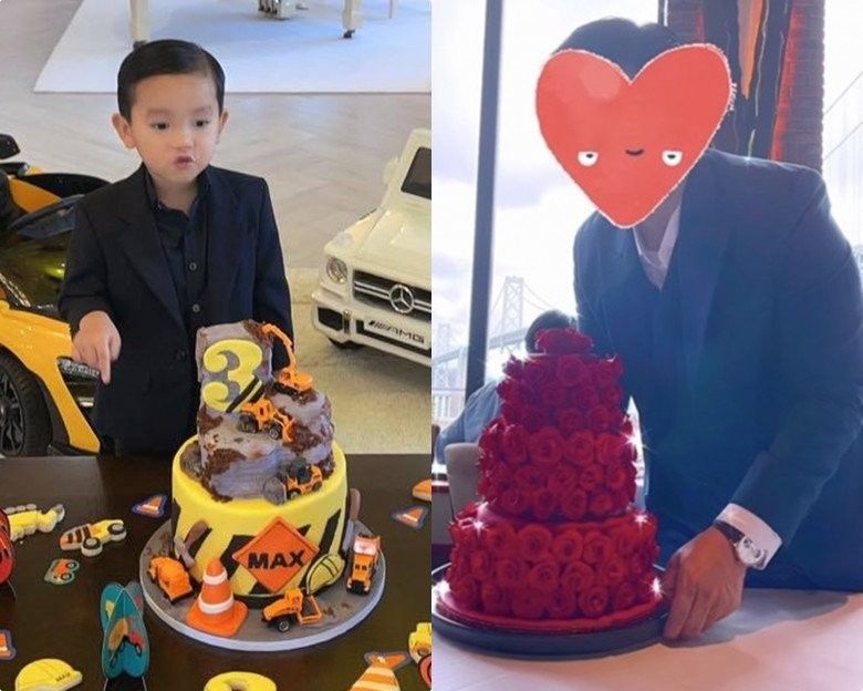 Trong tiệc sinh nhật năm ngoái, Max đóng bộ vest bảnh bao y hệt với bố mình.