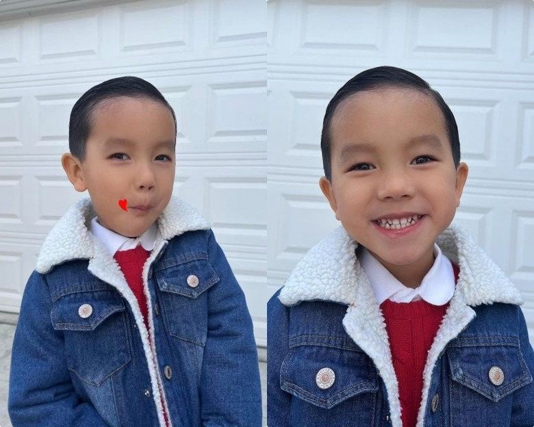 Em bé nay đã lớn thấy rõ. Cậu con trai cả của Phạm Hương sở hữu gương mặt khôi ngô, tuấn tú với đôi mắt rất sáng cùng nụ cười tươi.