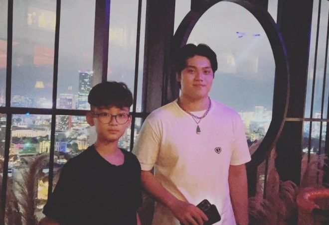 Nhìn ảnh, có thể thấy con trai cả của nam doanh nhân trông chững chạc, cao to, có nhiều nét giống bố. Trong khi đó, cậu em trai cùng cha khác mẹ có tạng người gầy, thấp bé dù sở hữu gương mặt sáng sủa.