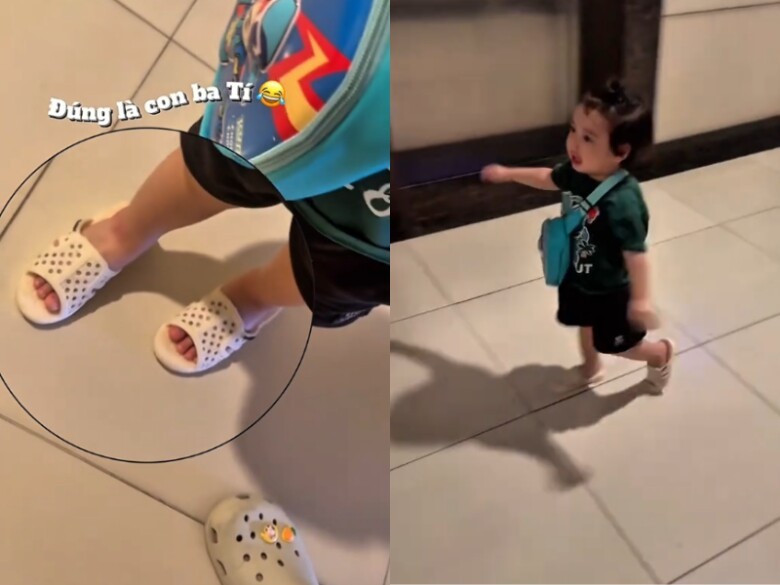 Bé Hope giản dị giống Trường Giang, thích mang dép tổ ong.
