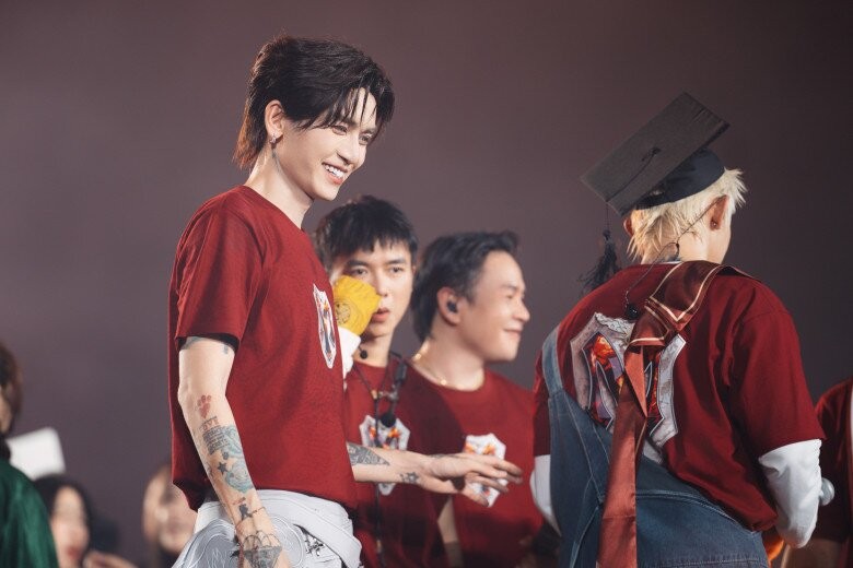 Mặc dù vậy, trong đêm concert, Phan Đinh Tùng vẫn có mặt dưới khán đài để ủng hộ những người đồng đội của mình. Khoảnh khắc nam ca sĩ đội mưa, cổ vũ hết mình khiến nhiều người hâm mộ xúc động.