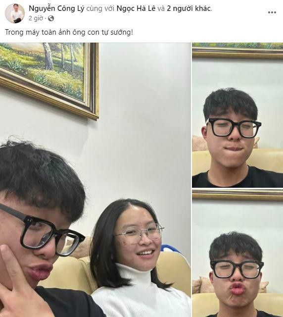 Kèm theo đó là những bức hình Tít chụp ảnh tự sướng cùng chị gái Kiến, thậm chí là hình ảnh cậu nheo mắt, chu môi xì tin. Chắc hẳn những bức hình này đã khiến Công Lý vô cùng hạnh phúc bởi chàng quý tử đáng yêu, vô tình hay cố ý lưu giữ hình ảnh của mình trong máy điện thoại của bố để bố có thể thoải mái ngắm nhìn khi nhớ. Công Lý không ngần ngại tag thêm tên vợ Ngọc Hà và vợ cũ Thảo Vân để chung vui niềm vui.