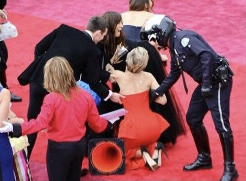 Vì trước đó té quá nhiều trên thảm đỏ, nhiều người cho rằng nữ minh tinh đành phải dùng cách này.