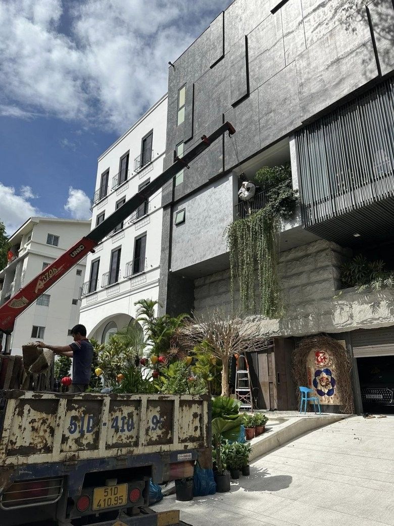 Bên cạnh đó là một cây khô treo đầy đèn nháy và phong bao lì xì đỏ khiến căn biệt thự càng thêm nổi bật. Không chỉ vậy, Cường Đô La còn tậu thêm không ít cây xanh vào nhà như trầu bà lá xẻ, lan như ý, vạn niên thanh,... để tô điểm thêm cho không gian sống.