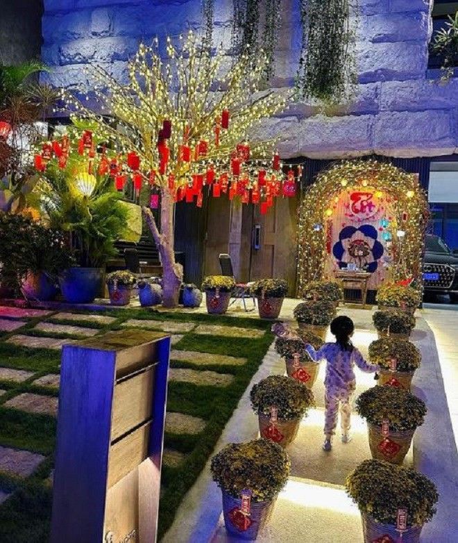 Theo những bức ảnh có thể thấy, gia đình nhà Cường Đô La đón Tết theo phong cách nhà giàu, được trang trí một cách chỉn chu từ cổng vào trong nhà. Ngôi biệt thự sang chảnh được nam doanh nhân phủ đầy hoa, sắc màu tươi tắn.