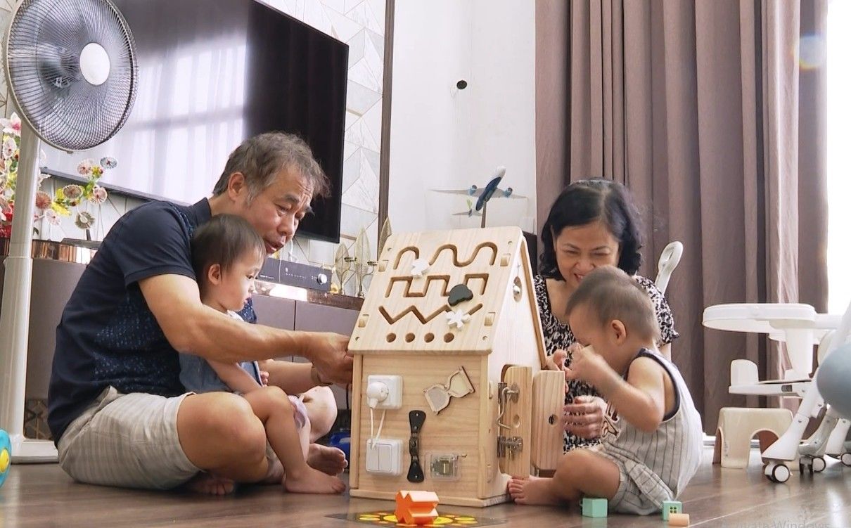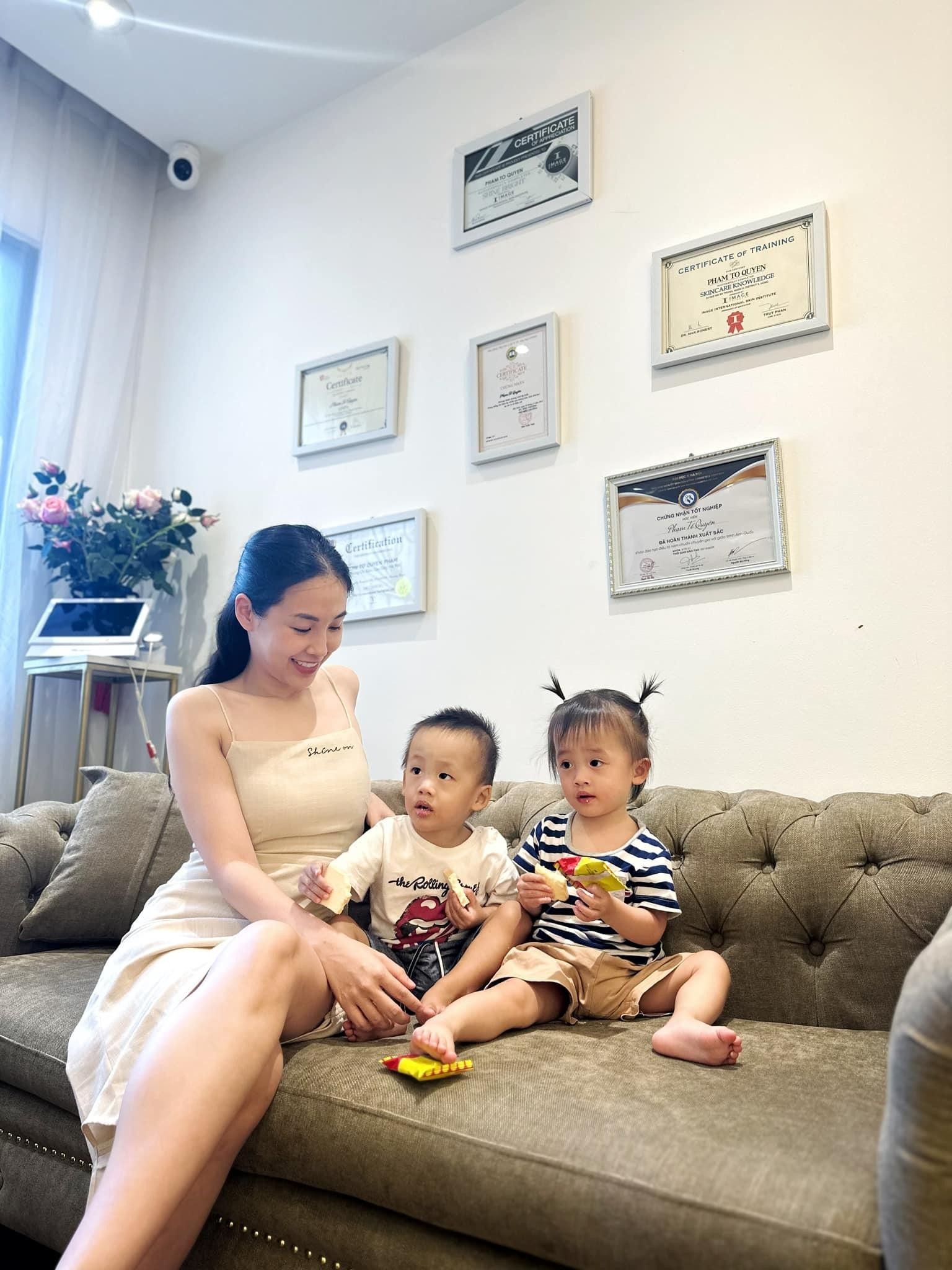 Nàng BTV dự định cho con đi học mầm non vào lúc 2 tuổi sau khi khám sức khỏe kỹ càng. Hiện tại, khi mẹ đi làm, cặp sinh đôi nhà cựu MC thời tiết được ông bà ngoại và 2 bác giúp việc trông nom.