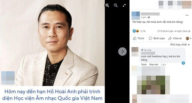 Trên nhiều diễn đàn, câu chuyện "Hồ Hoài Anh trình diện" đang là chủ đề được dân tình bàn tán xôn xao, làm nổ ra không ít bình luận trái chiều. Một fanpage chuyên bàn chuyện showbiz đăng tải thông tin kèm dòng chú thích: "Tới hiện tại, Hồ Hoài Anh vẫn khá kín tiếng", nhận được gần 6.000 lượt thích chỉ sau 2 giờ đăng tải.