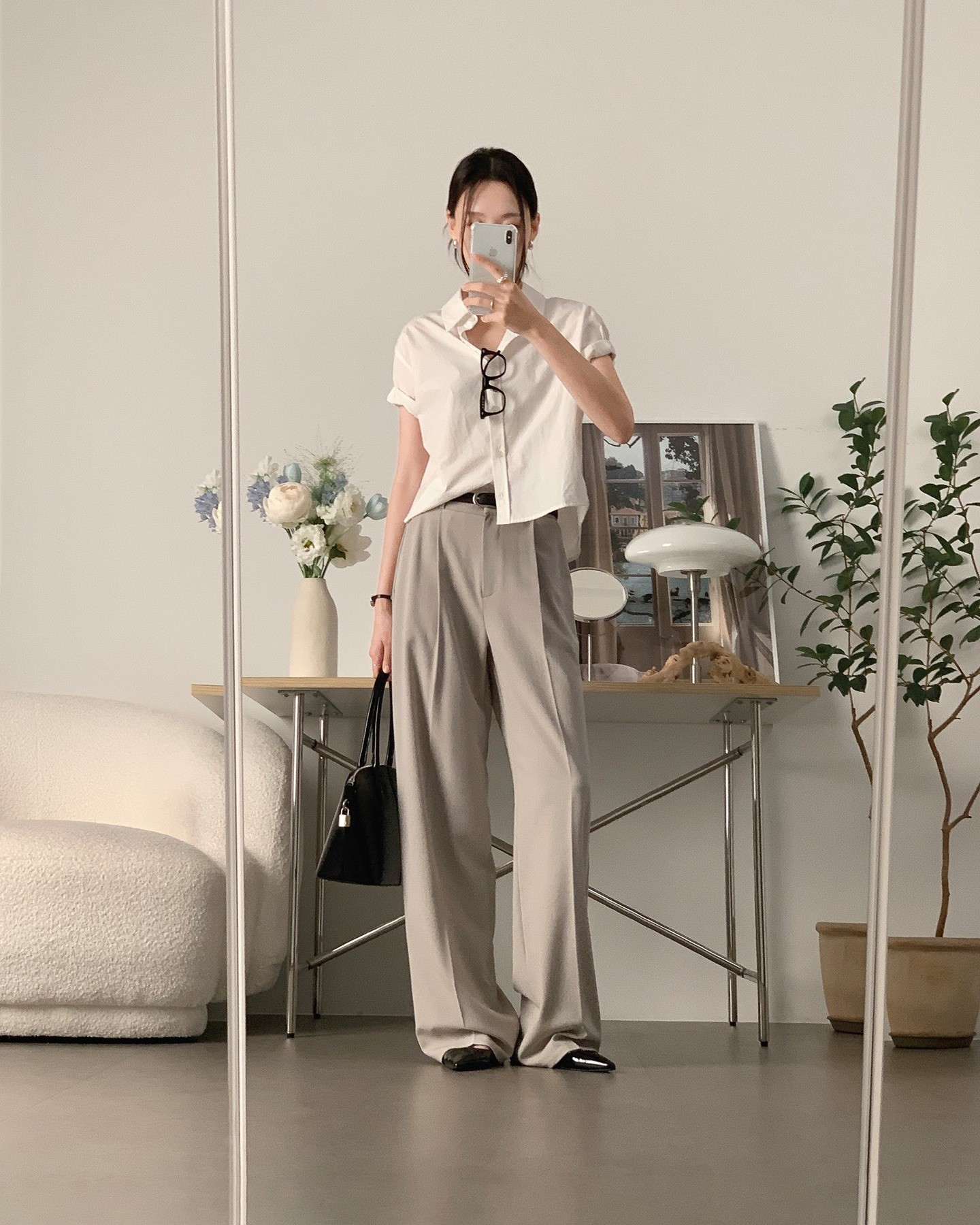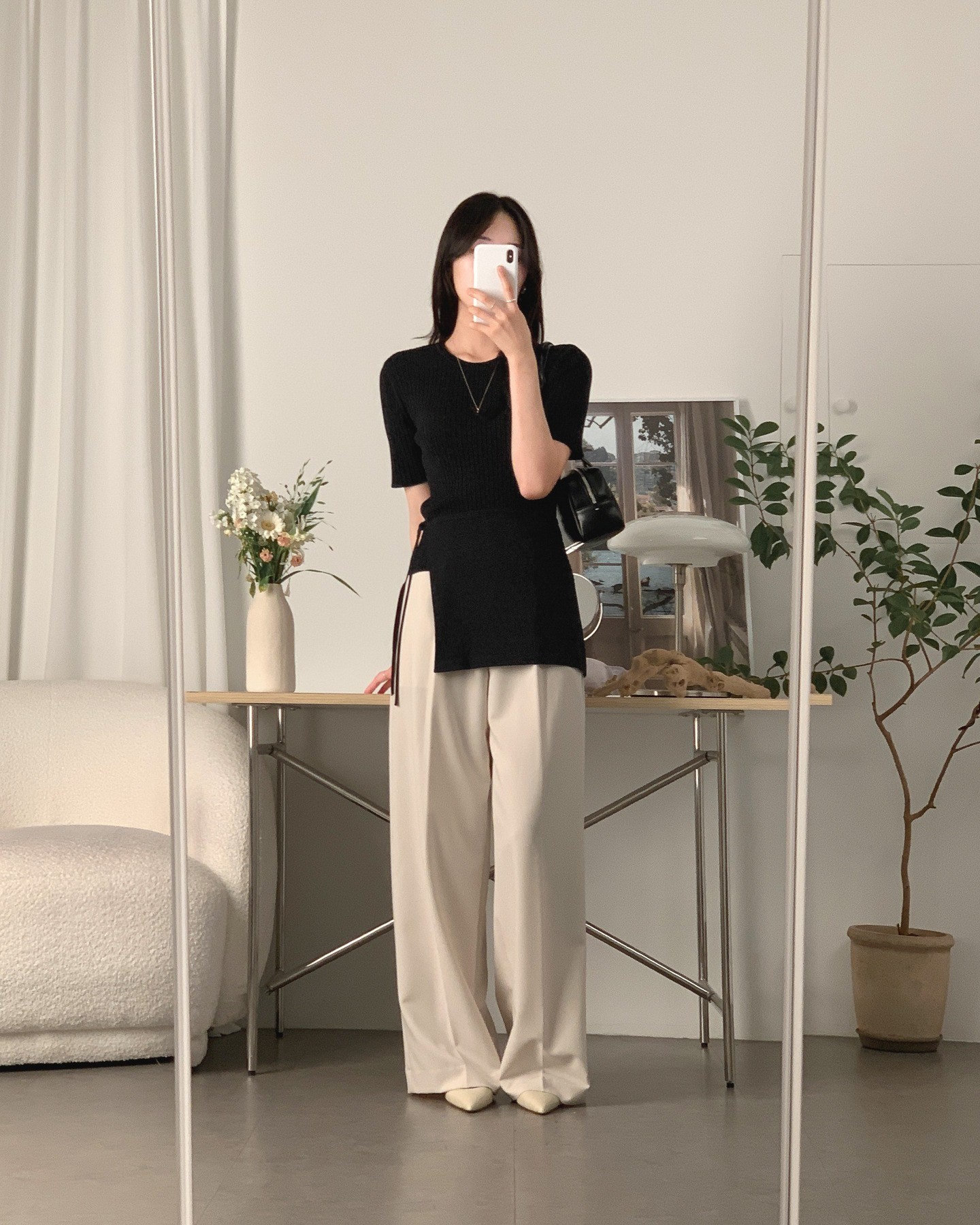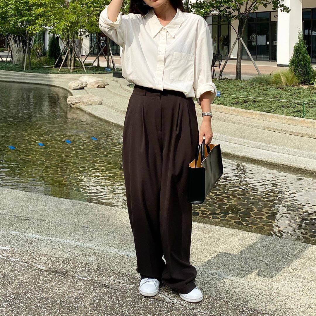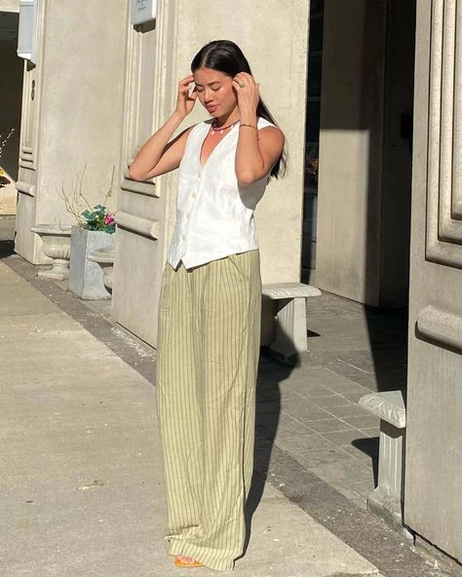 Quần trắng ống rộng mang lại diện mạo sáng sủa, tinh khôi đầu năm. Dễ phối cùng áo pastel hoặc trung tính, giúp outfit trông sang và bắt ảnh hơn.