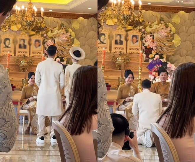 Khoảnh khắc cô dâu - chú rể quỳ chào bố mẹ.
