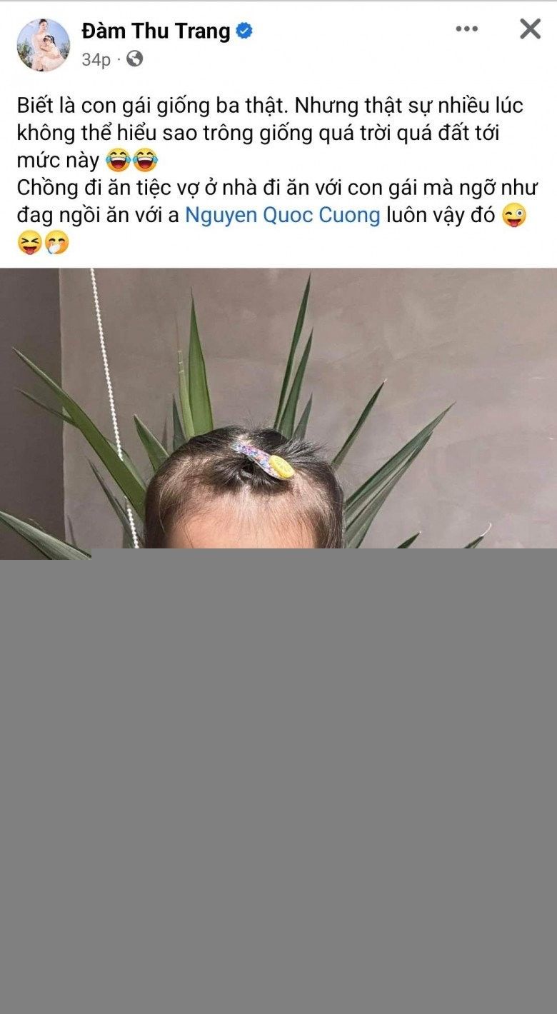 Đàm Thu Trang cảm thán vì con gái giống bố đến mức "khó tả".