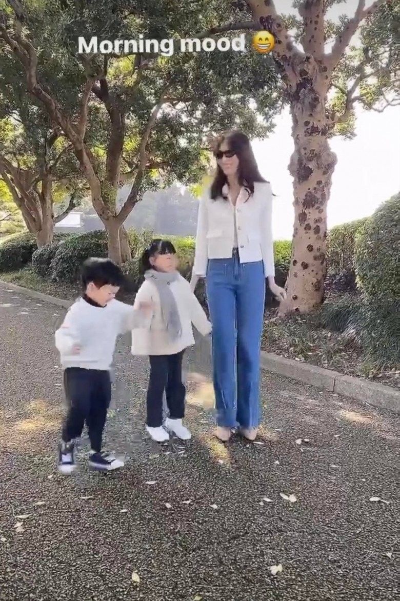 Đặng Thu Thảo còn thoải mái chia sẻ đoạn clip 3 mẹ con cùng nhảy trên đường, thể hiện niềm vui và sự phấn khích trong buổi sáng vi vu đất nước hoa anh đào. Đoạn clip cũng cho thấy 2 bé Sophie và Liam phát triển chiều cao vượt bậc, trông vô cùng cứng cáp và đáng yêu.