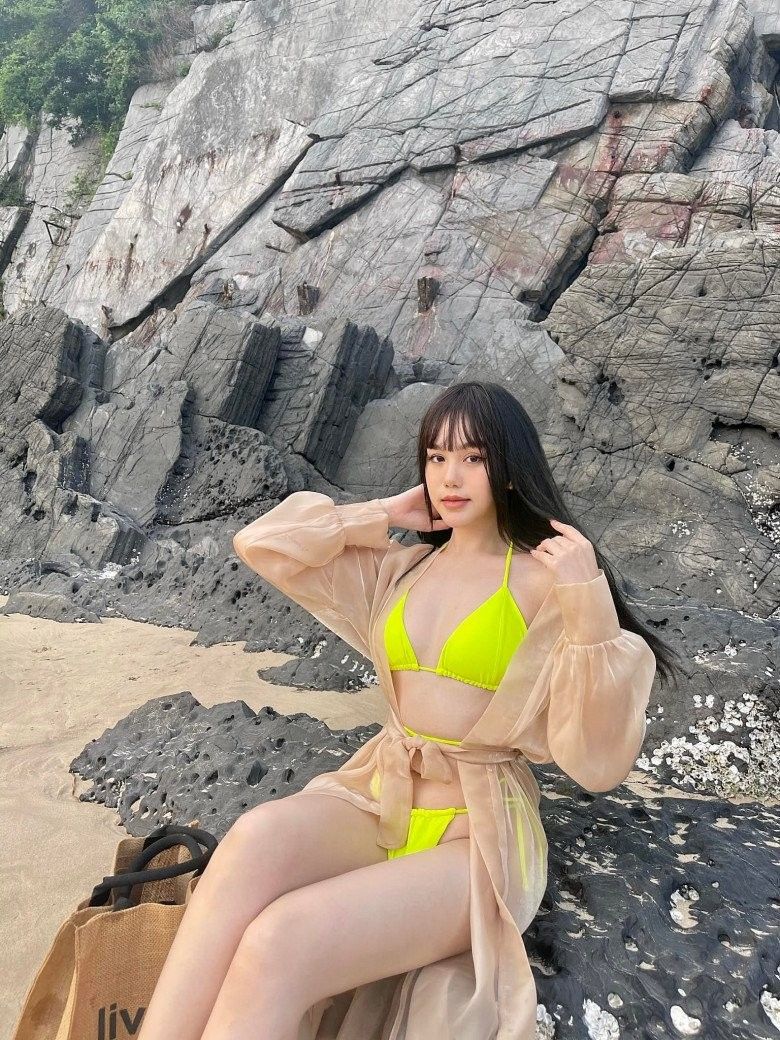 Những tấm hình khoe dáng với bikini 2 mảnh của nàng hoa khôi có lượng tương tác lớn.